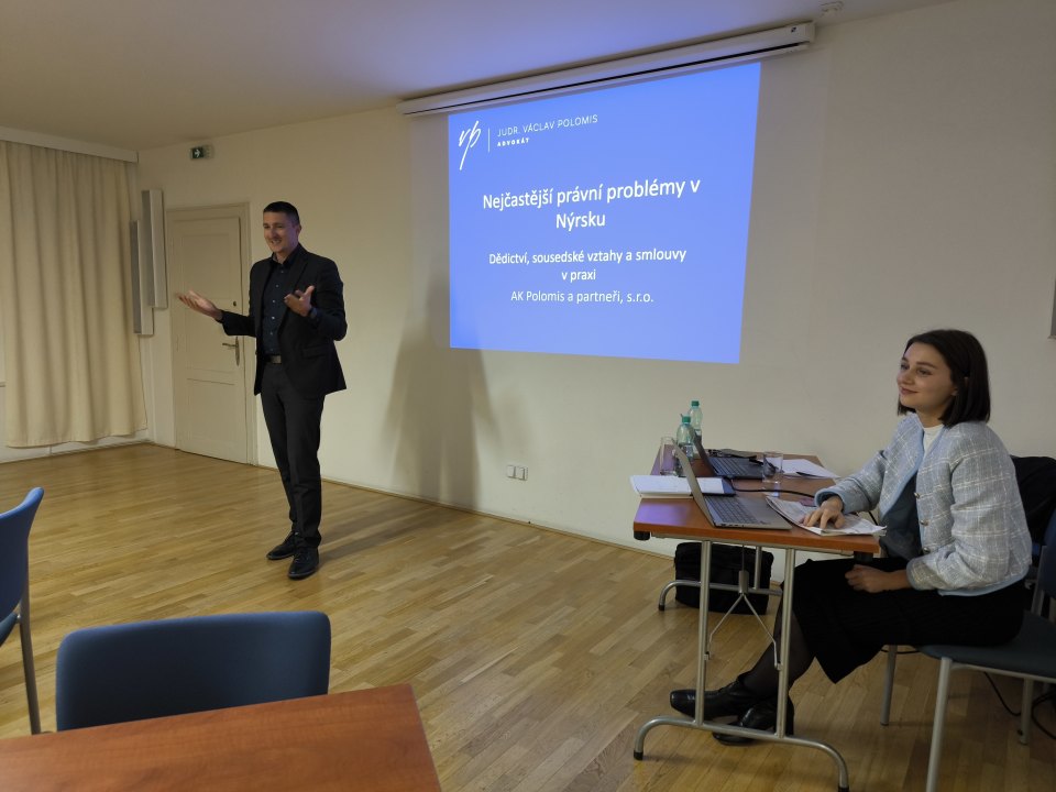 Čtvrteční večer ve společenském sále Městské knihovny Nýrsko, patřil přednášce JUDr. Václava Polomise a jeho kolegyně Mgr. Natálie Lokajové. Jak z názvu vyplývá, tématem byly nejčastější právní spory v Nýrsku a okolí. Od závětí přes sousedské spory až po rozvody. Nechyběly příklady z praxe. Bezpochyby zajímavou zkušeností byl zinscenovaný soudní proces. Děkujeme všem, kteří přišli a zapojili se do diskuze.