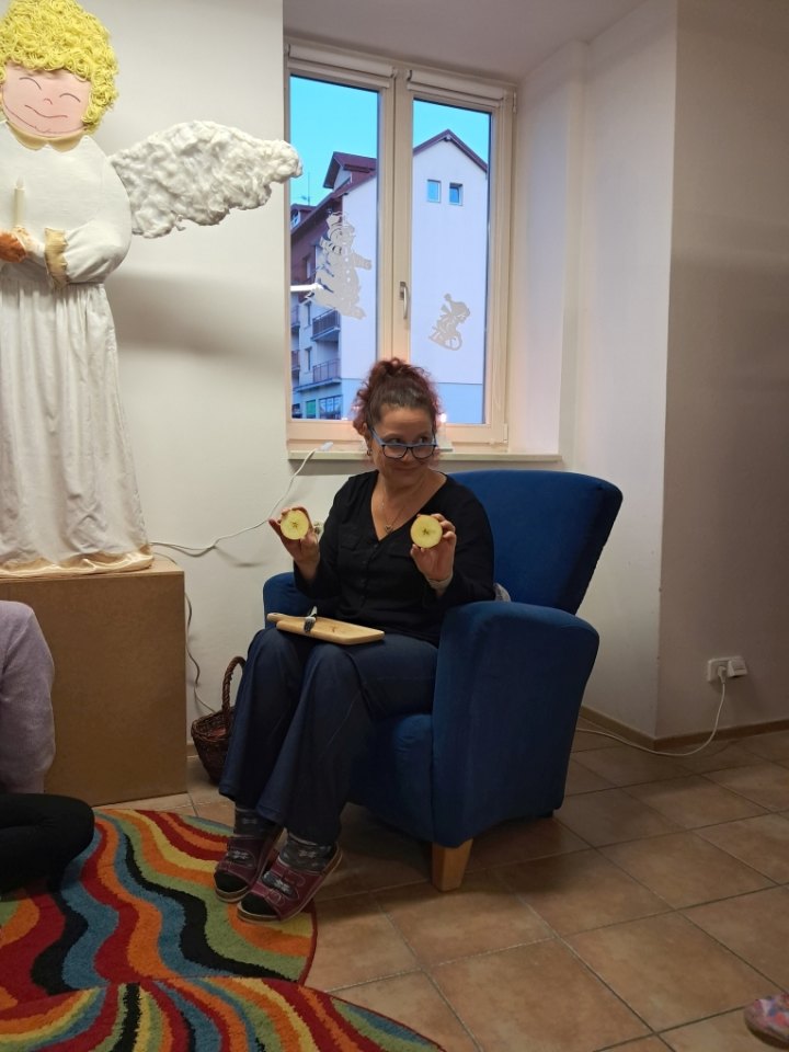 Při třetím Adventním čtení se děti mohly těšit dokonce ze dvou pohádek z knihy Chumelení. První byla o polštářku plném snů a druhá o hvězdičce co nesvítila. Byla totiž v rozkrojeném jablíčku. Děti dostaly jablíčko. Některé si ho rozkrojily hned, aby zjistili, jestli tam hvězdičku mají také. Byla tam.